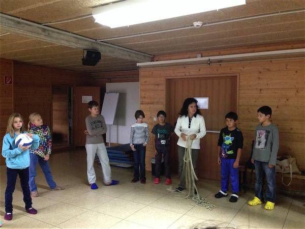 Nach dem Frühstück am nächsten Morgen standen einige Spiele und Aktivitäten unter folgendem Motto auf dem Programm: Wie bringe ich mich in einer Gemeinschaft ein? Hier steuerten auch unsere Buddys viele wertvolle Spiele und Ideen bei.